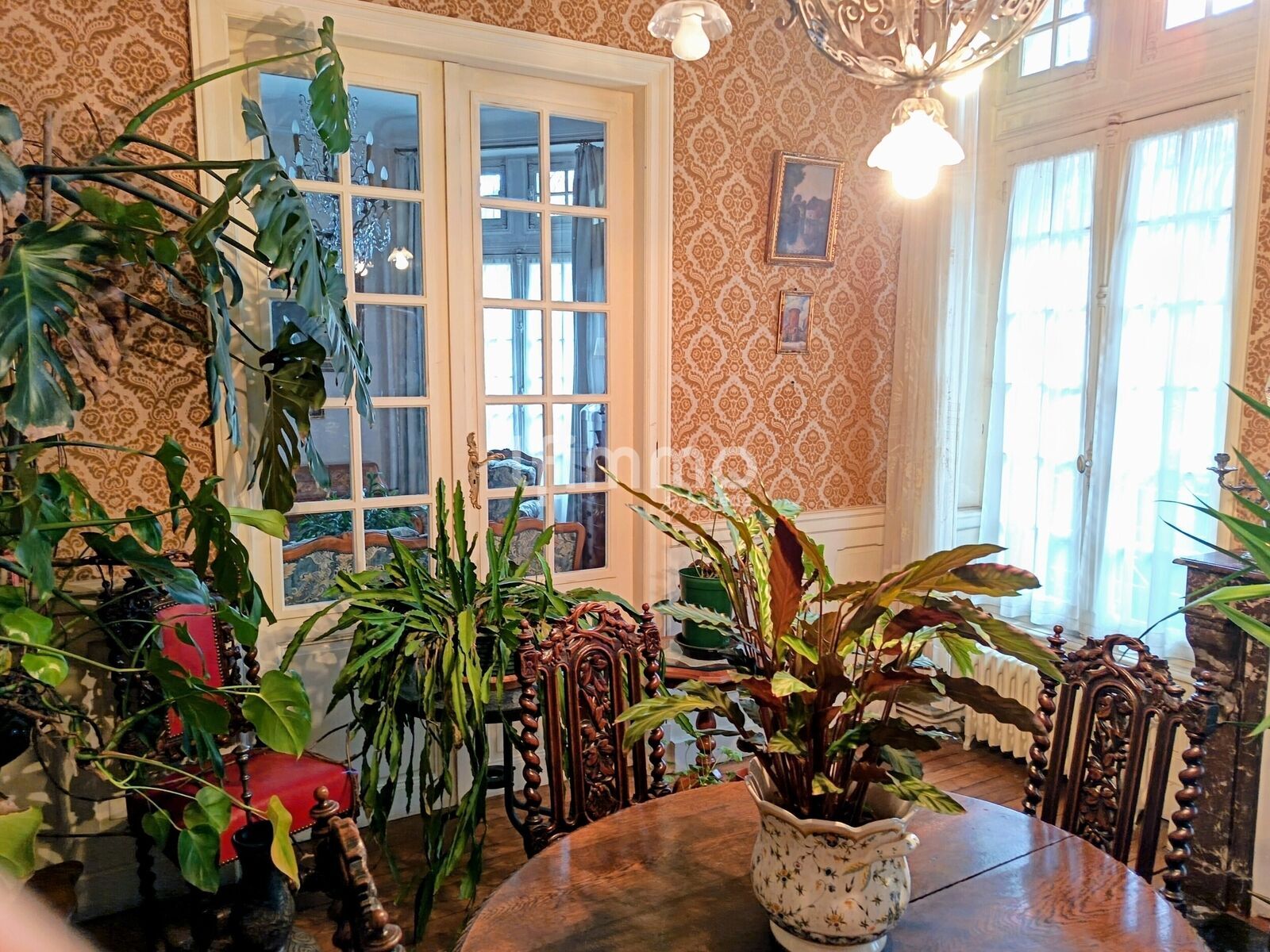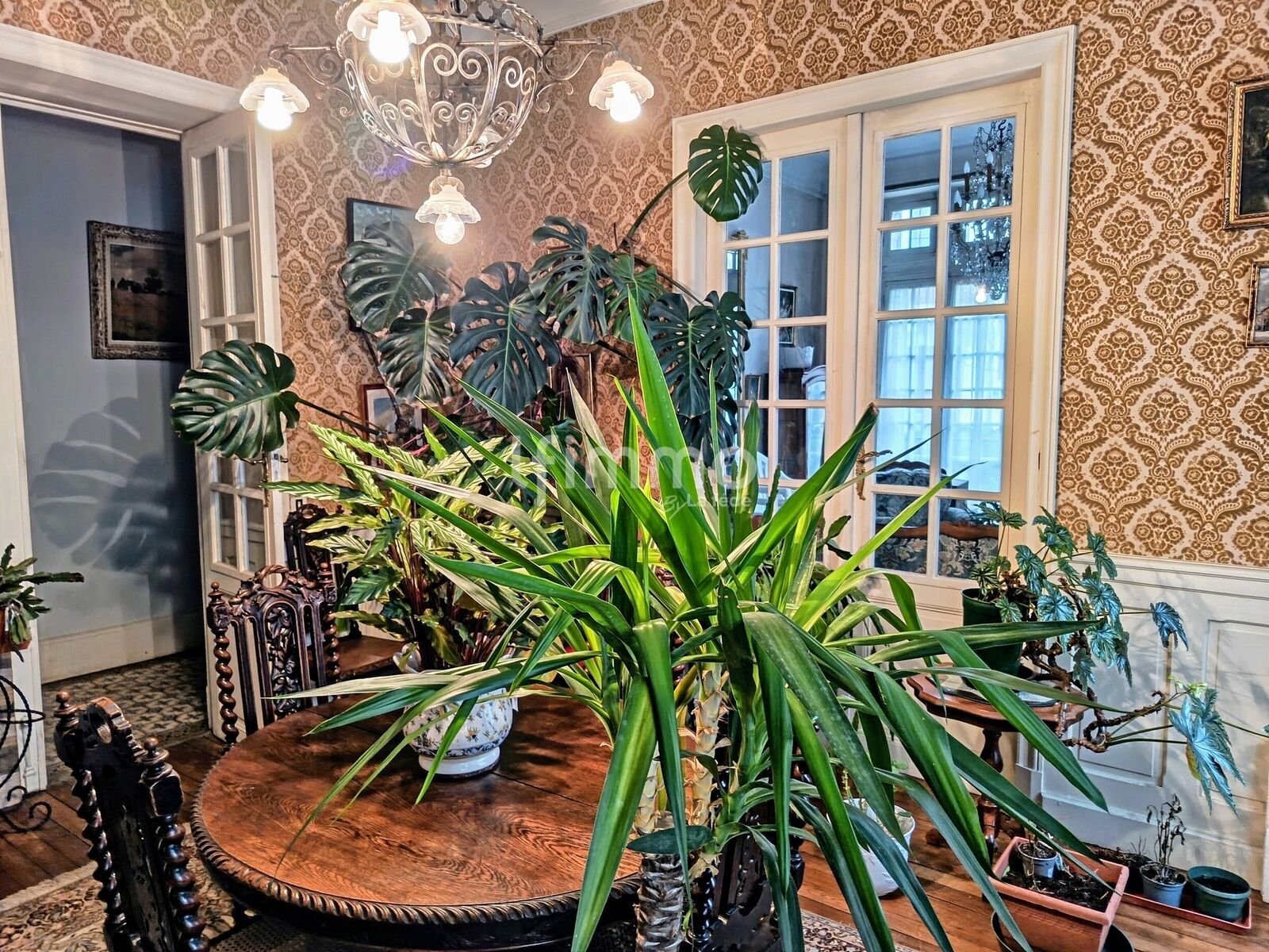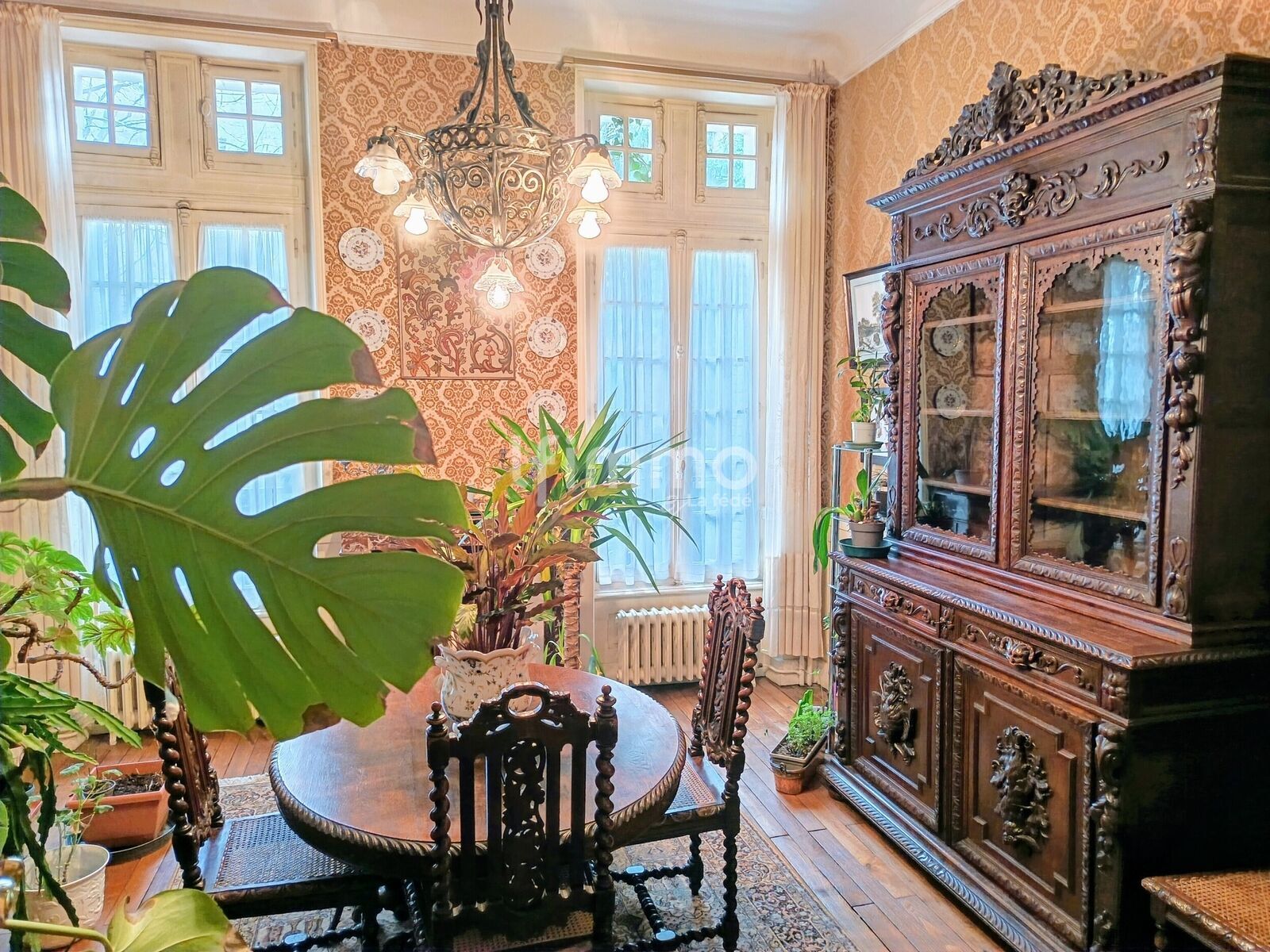 La haute porte d'entrée peut s'ouvrir partiellement grâce à une ferronnerie astucieuse. De beaux carreaux de ciment ornent le couloir d'entrée. Les 3 niveaux d'habitation sont desservis par un magnifique escalier en stuc à rampe de bois monumentale et aux marches confortables à monter comme à descendre, le tout éclairé par de hautes fenêtres. Les radiateurs anciens en fonte diffusent une chaleur douce tout au long de la journée.