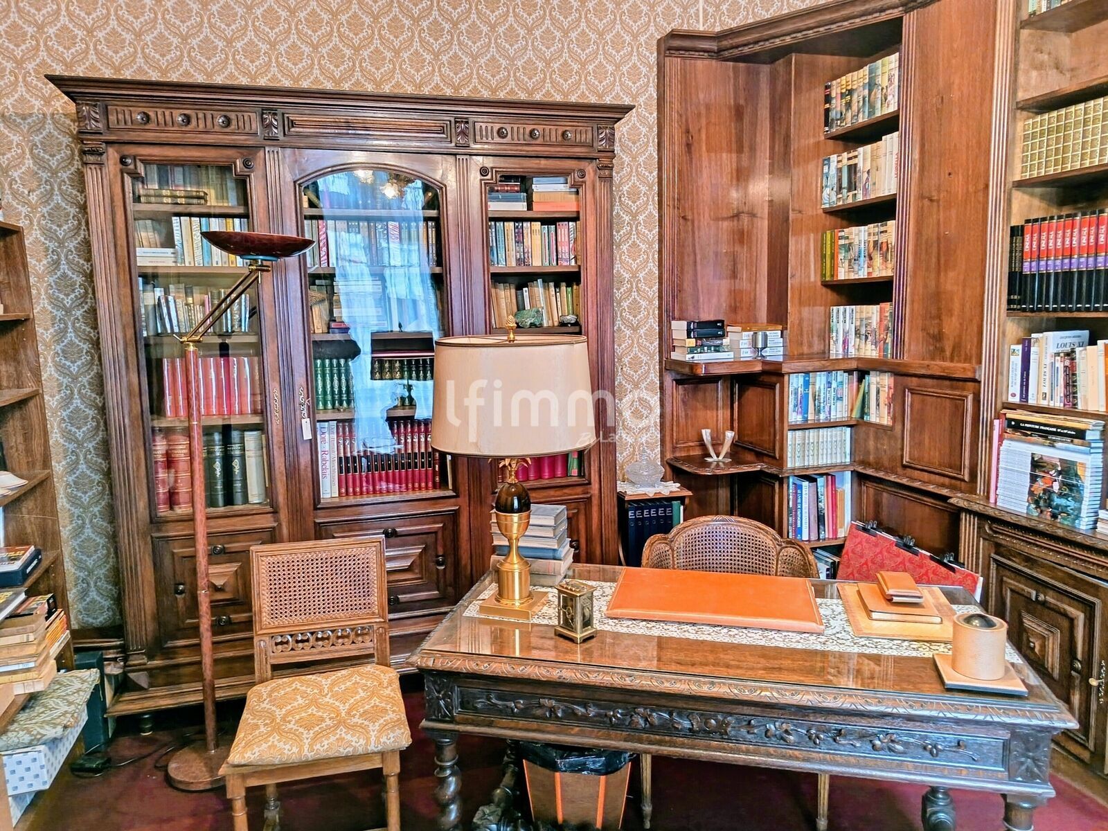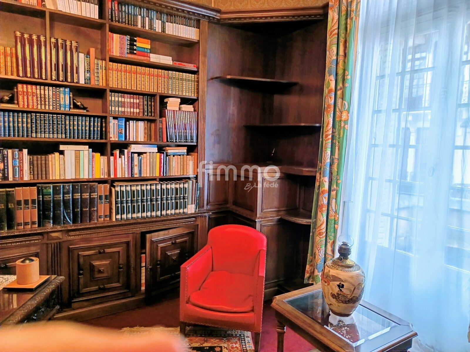 Les pièces de vie telles que la salle à manger et le salon exposées au Sud communiquent entre elles et s'ouvrent plus largement les jours de réception. Deux cheminées viennent agrémenter ces deux pièces. Un somptueux bureau aux boiseries anciennes peut demain devenir une bibliothèque, ou un petit salon, ou permettre à une profession libérale d'installer son activité dès l'entrée de la maison.