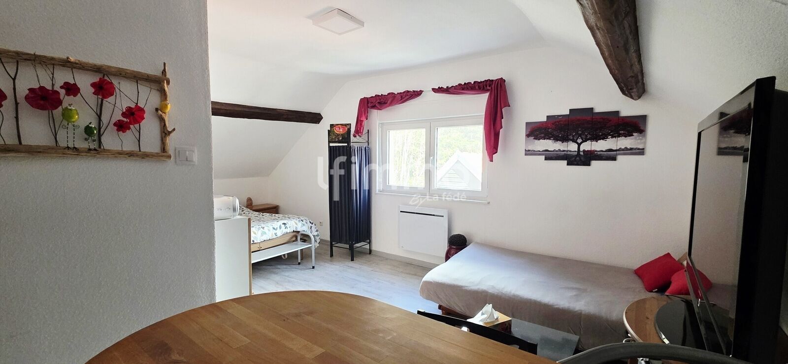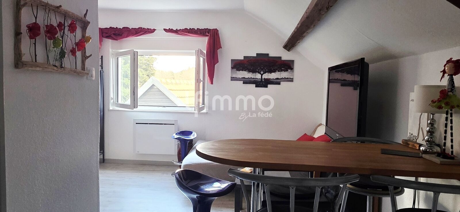 Il offre une atmosphère chaleureuse avec ses volumes sous combles, ses poutres apparentes et une belle luminosité naturelle.