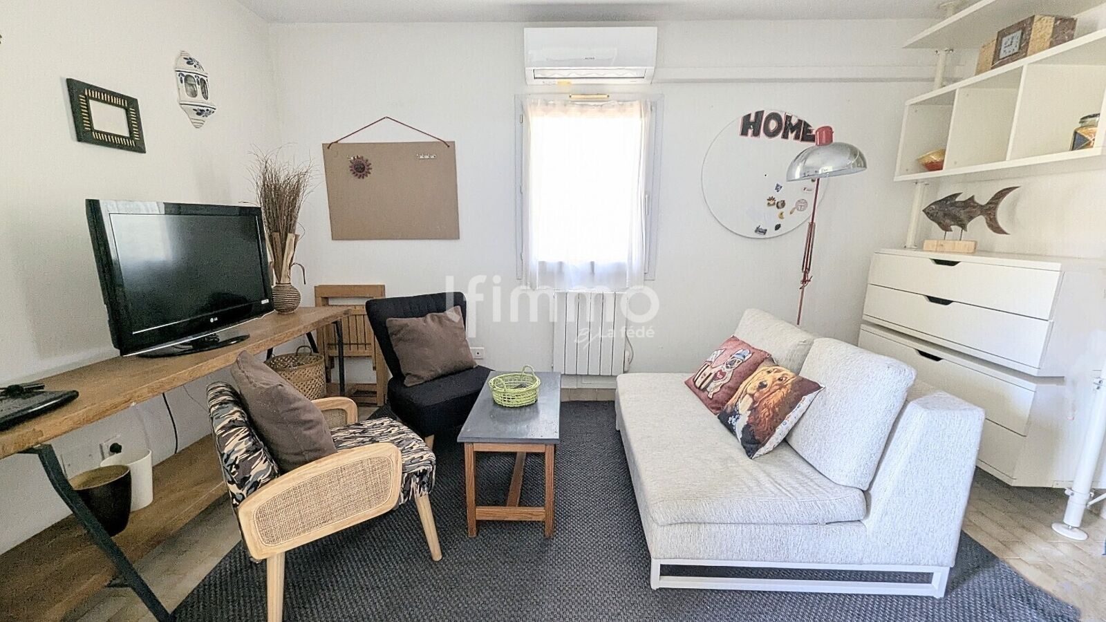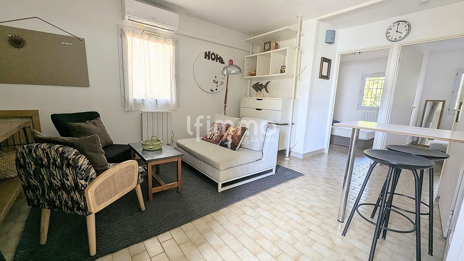 d’un séjour climatisé avec cuisine ouverte équipée