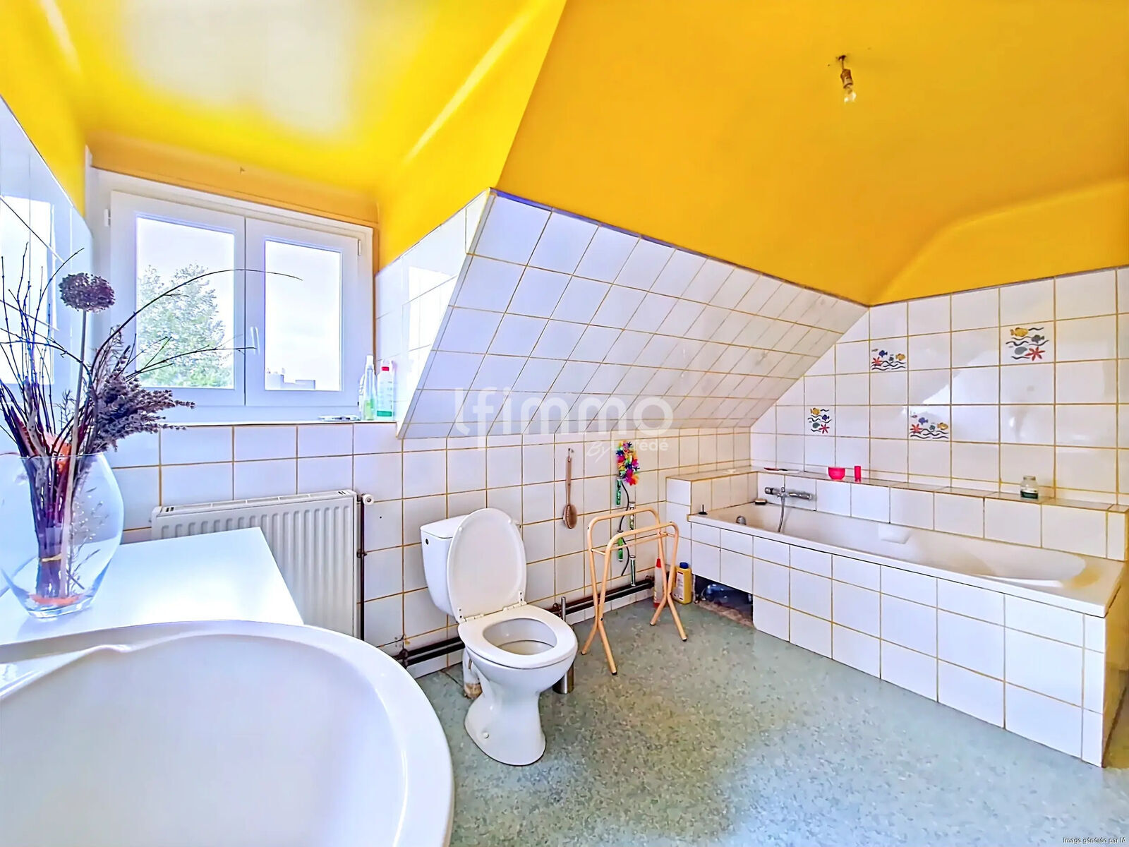 À l’étage : 2 grandes chambres, une salle de bain avec WC