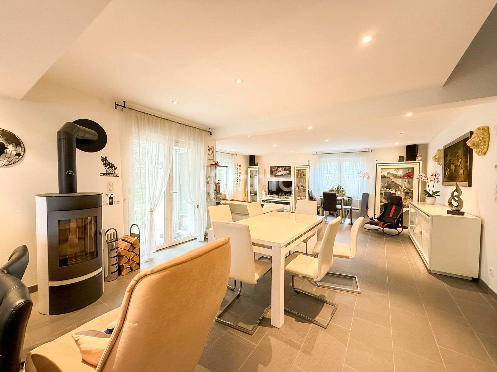 Dès l'entrée, laissez-vous séduire par des volumes majestueux. La pièce de vie, vaste et baignée de lumière, déploie un salon et une salle à manger aux proportions généreuses.