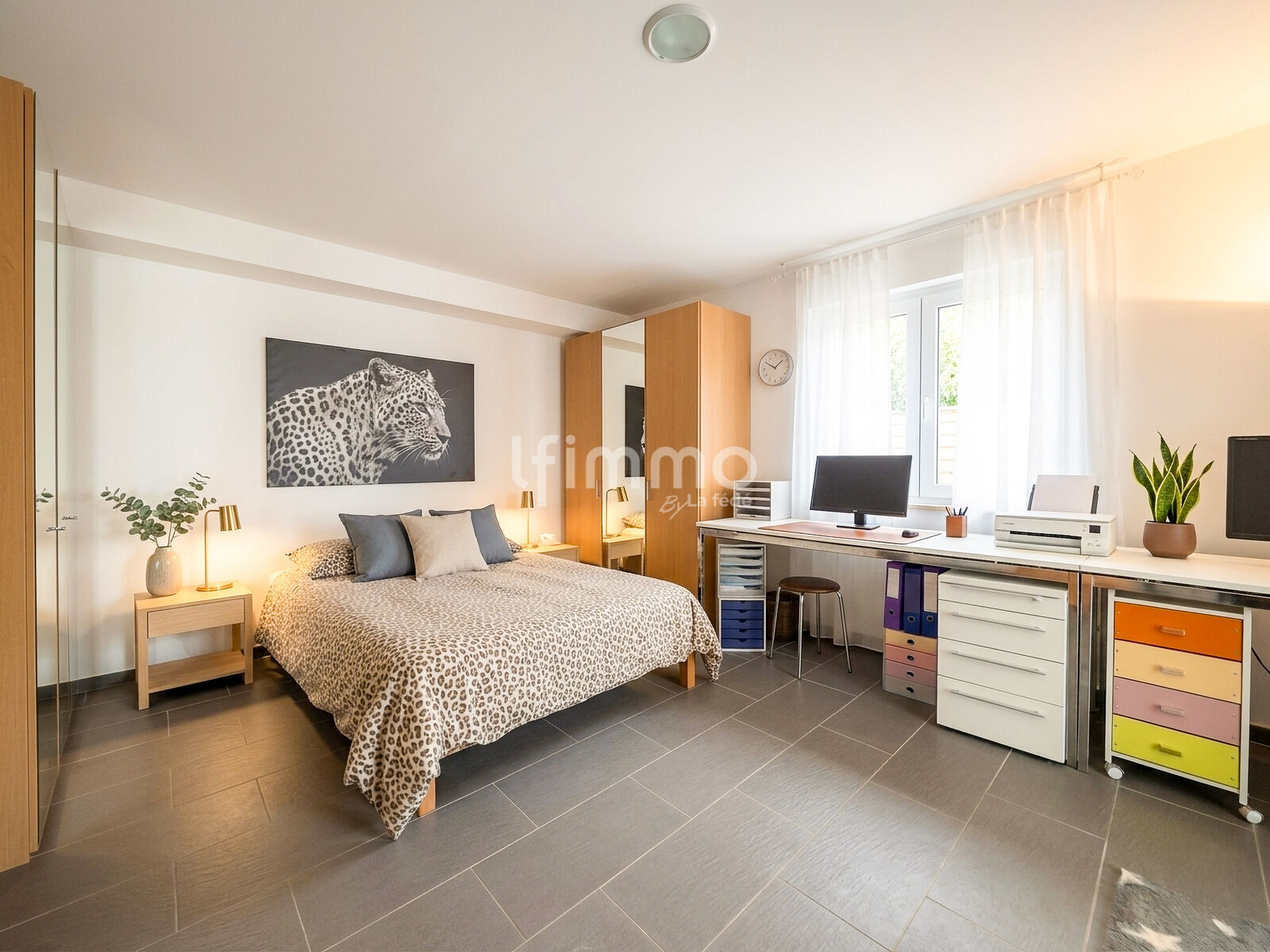 Configuration : Séjour avec cuisine, chambre, bureau et salle d'eau.