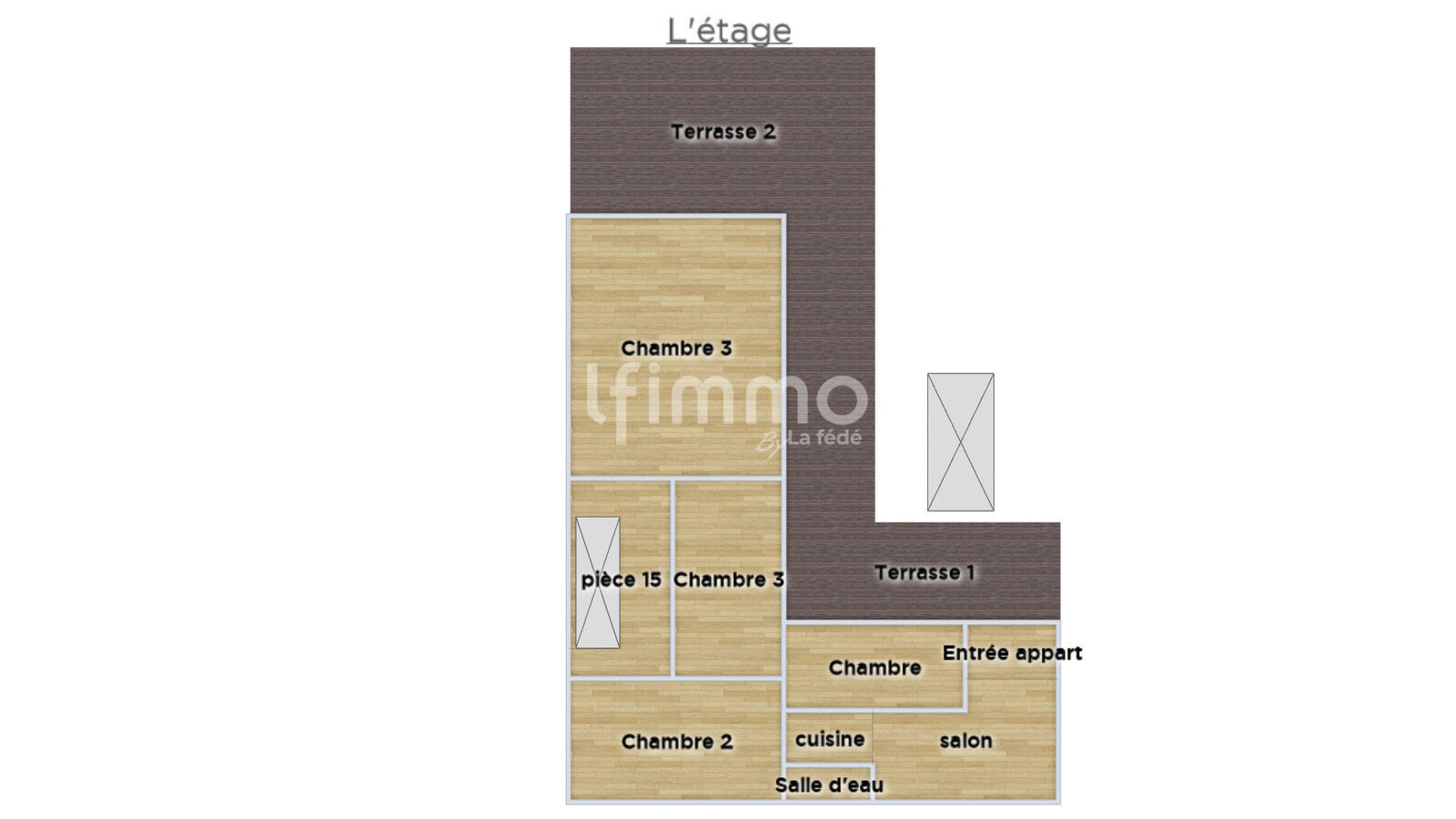 À l'étage vous y trouverez 3 belles chambres de 13m² à 17m², dont deux d’entre elles ont un accès à la terrasse