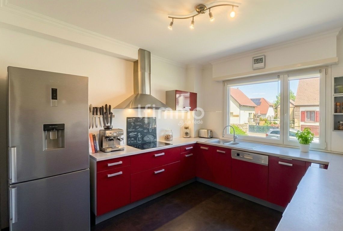 À vendre à Gerstheim, dans un secteur calme, bel appartement de 85,3 m² en bon état général, situé en rez-de-chaussée surélevé d’un immeuble de 1972.