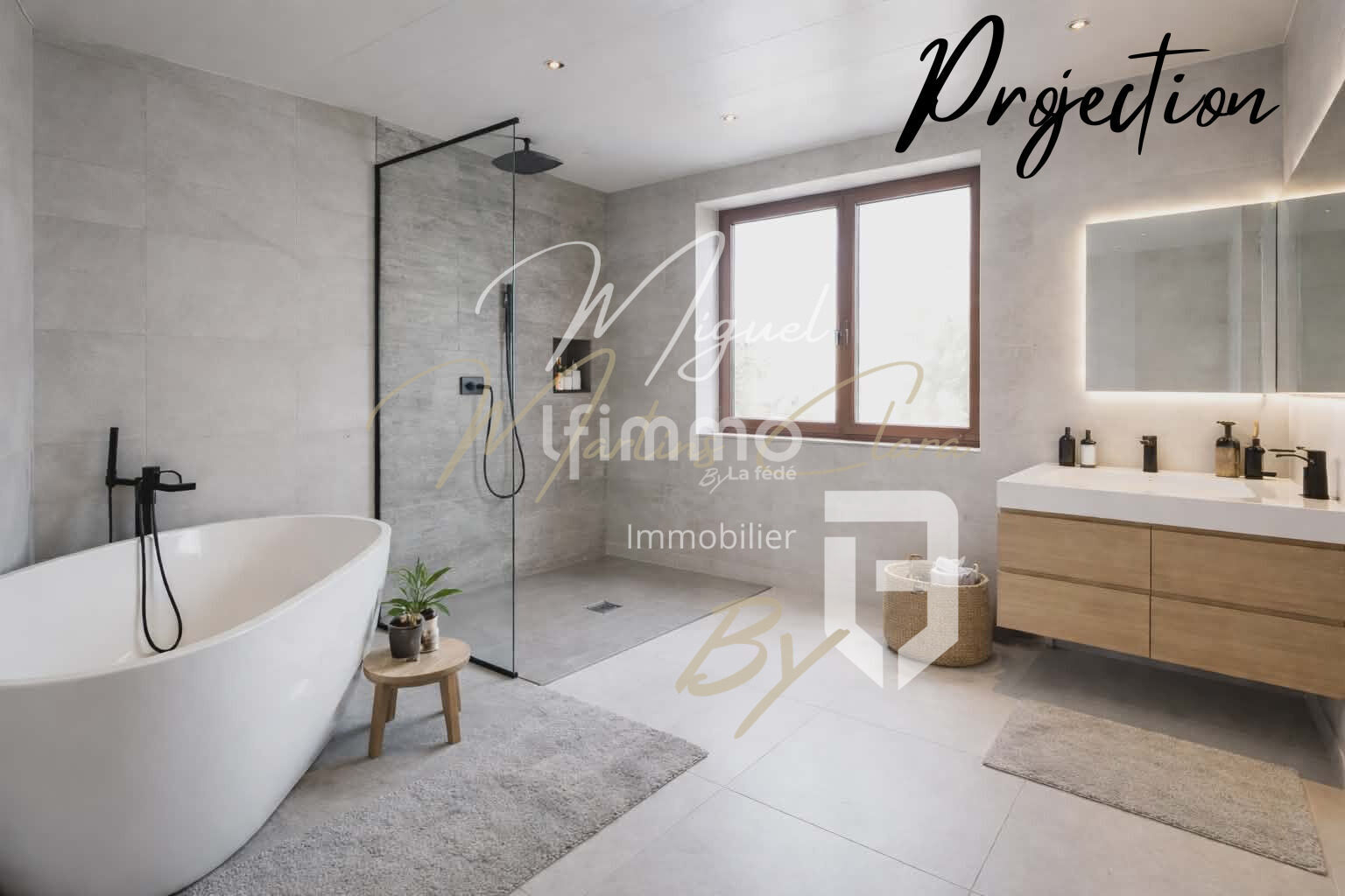 Le rez-de-chaussée dispose également d’une salle de bain spacieuse équipée d’une douche et d’une baignoire, offrant confort et praticité au quotidien.