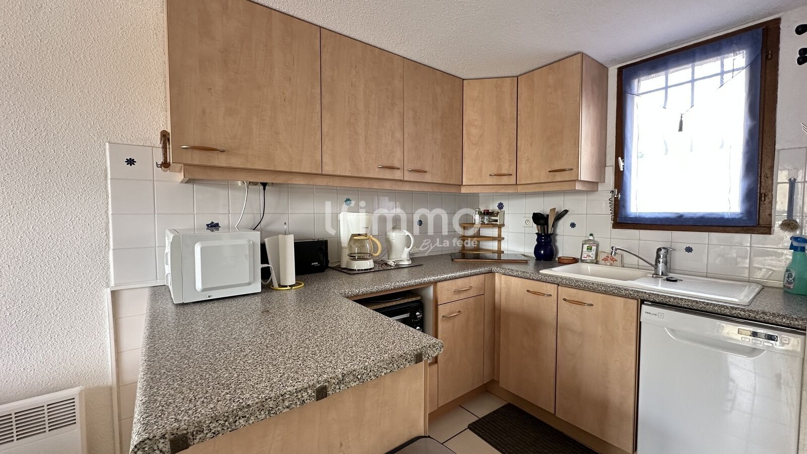 À seulement 100 m de la plage du Grazel, maison 5 pièces meublée avec terrasse et piscine dans résidence sécurisée.