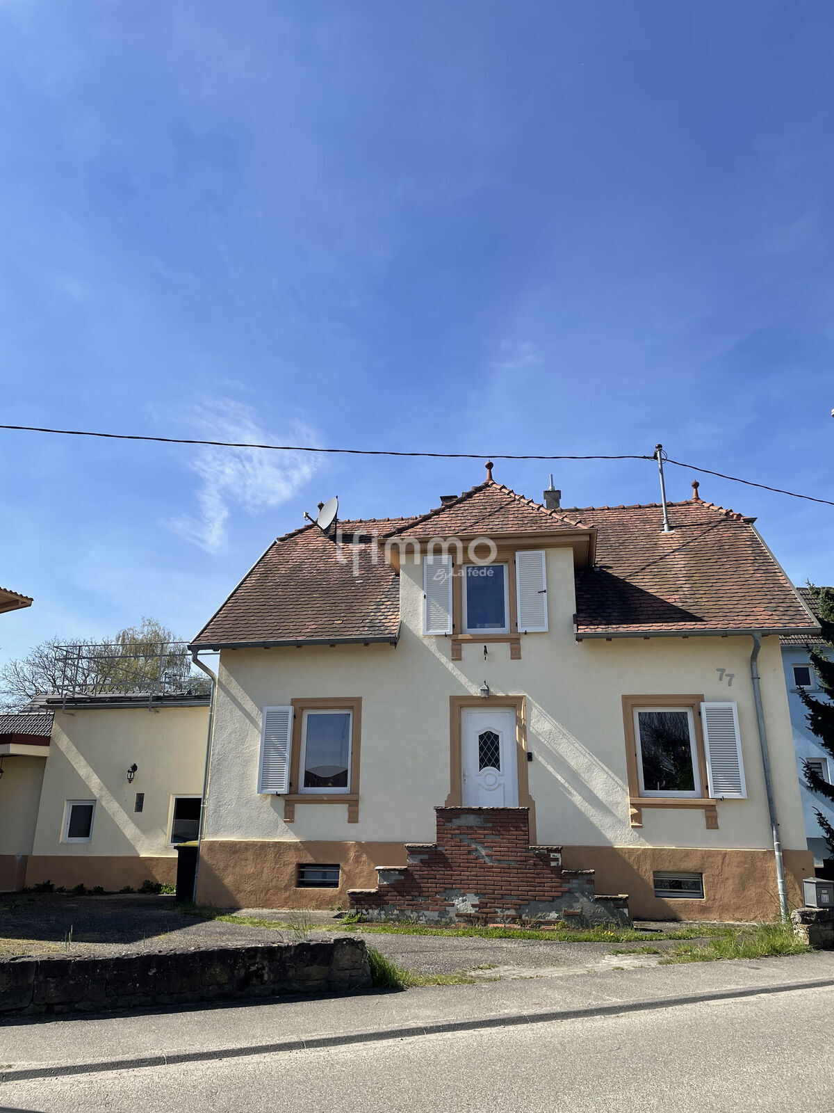 La propriété dispose également d'une cour et de 2 garages surplombés d'un appartement T2 de 23,75 m2.