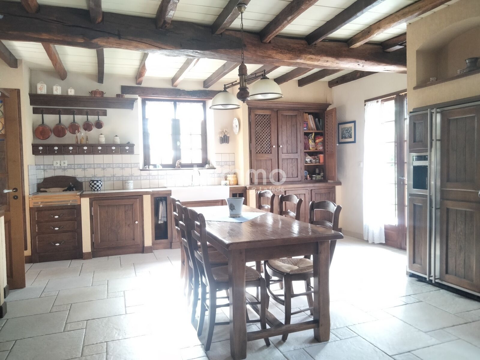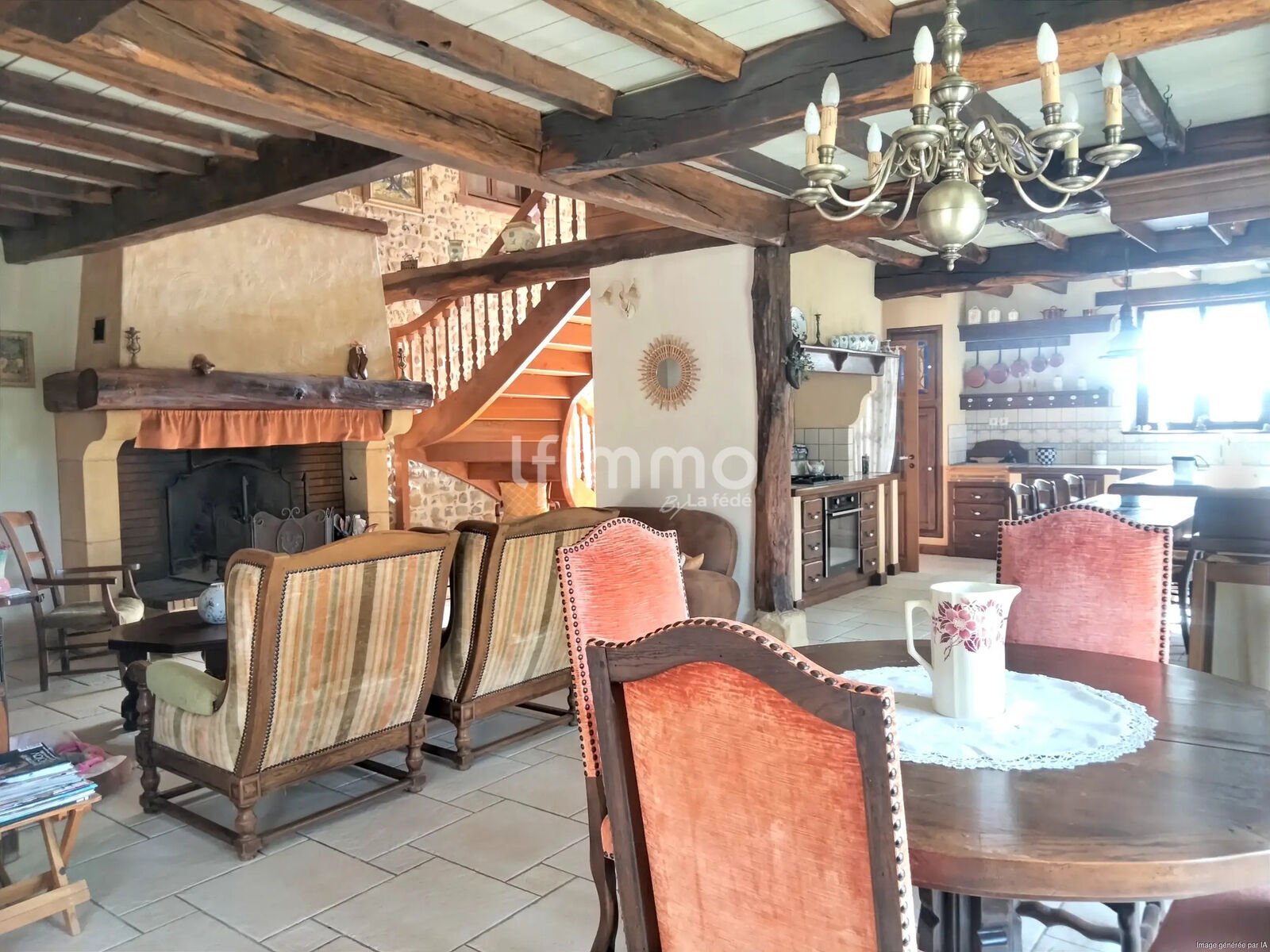 Le bien se compose de sept pièces principales, dont cinq chambres, permettant d’accueillir aisément une famille nombreuse. La maison comprend une salle de bain, une salle d’eau et deux WC, offrant ainsi une organisation fonctionnelle des espaces. La cuisine est équipée, facilitant la préparation des repas au quotidien. Un séjour agrémenté d’une cheminée apporte une ambiance chaleureuse et conviviale.