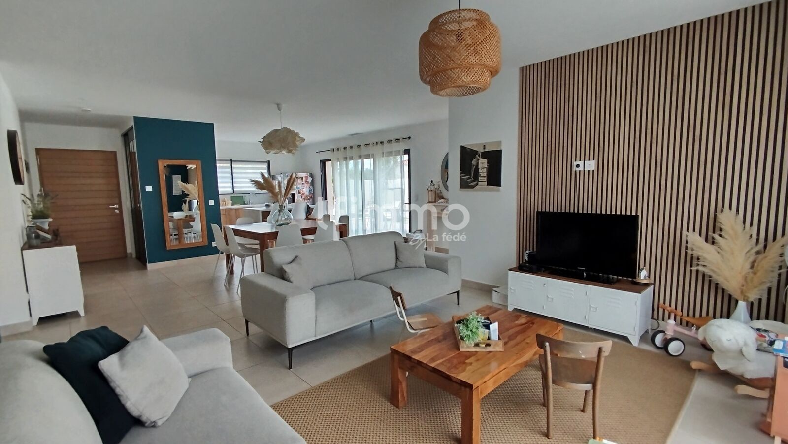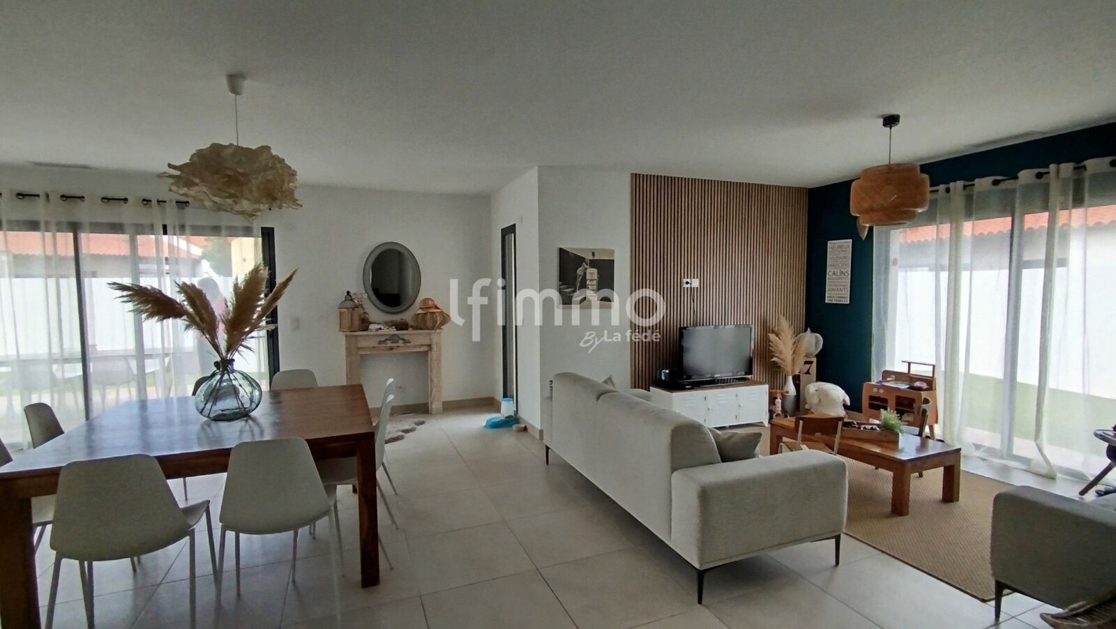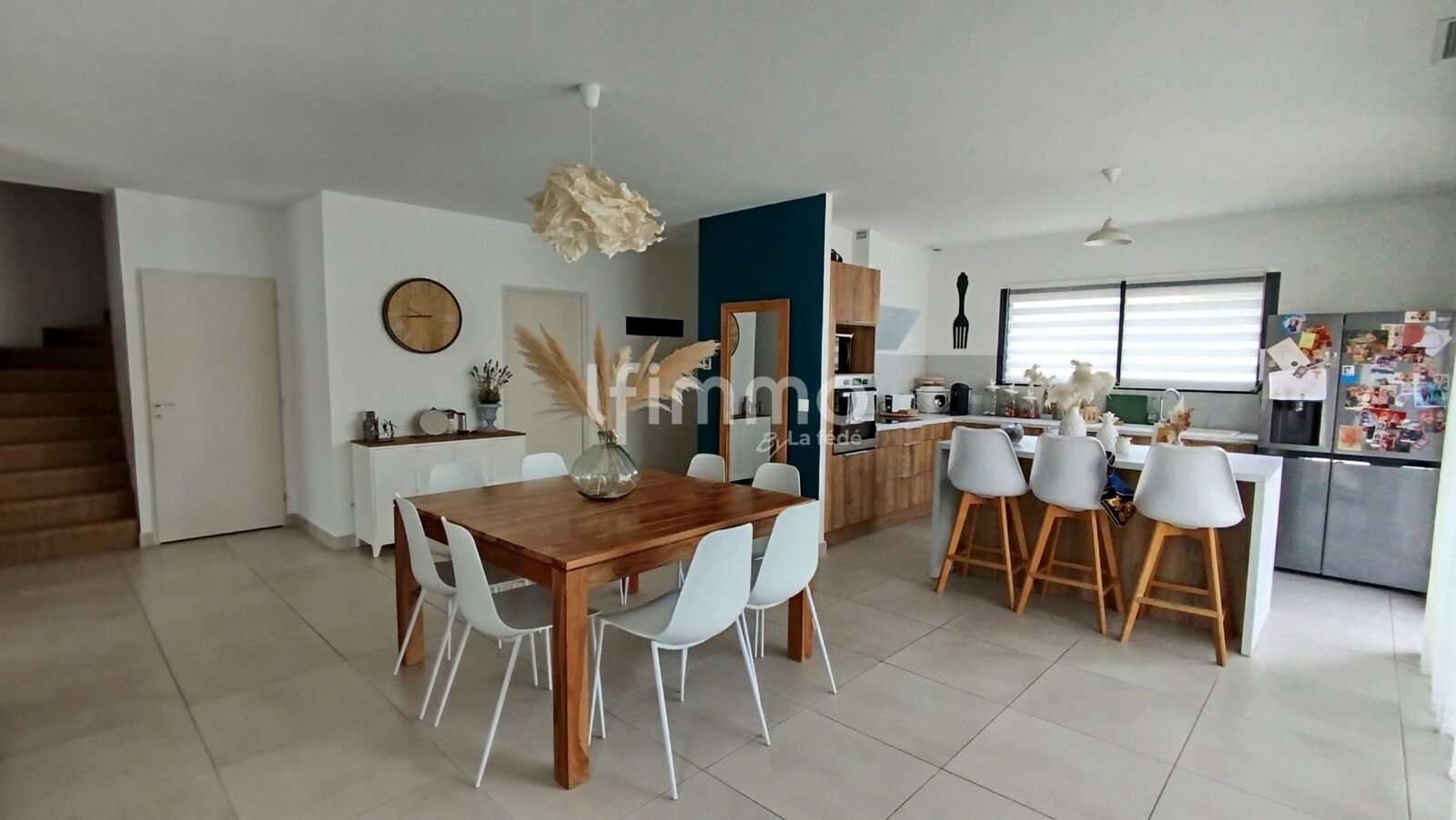 Vous y trouverez une spacieuse et lumineuse pièce de vie de 57m2 avec une cuisine équipée .