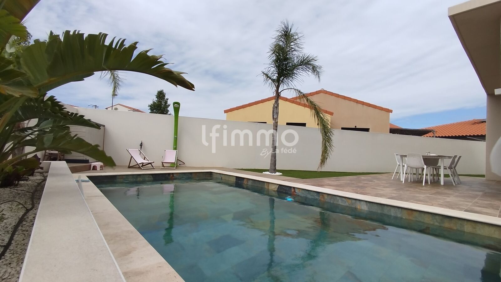 De plus vous retrouverez un extérieur propice aux moments de convivialité avec sa cuisine d'été et sa piscine de type Bali .