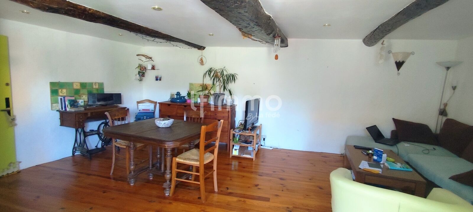 Un espace de vie sur plusieurs niveaux, lumineux, avec poutres apparentes et parquet bois, organisé autour d'un séjour de 25 m², deux chambres confortables (15,70 et 16,36 m²), une cuisine ouverte, buanderie, cave, bureau — et ce toit-terrasse que vous ne trouverez pas dans la maison d'à côté.