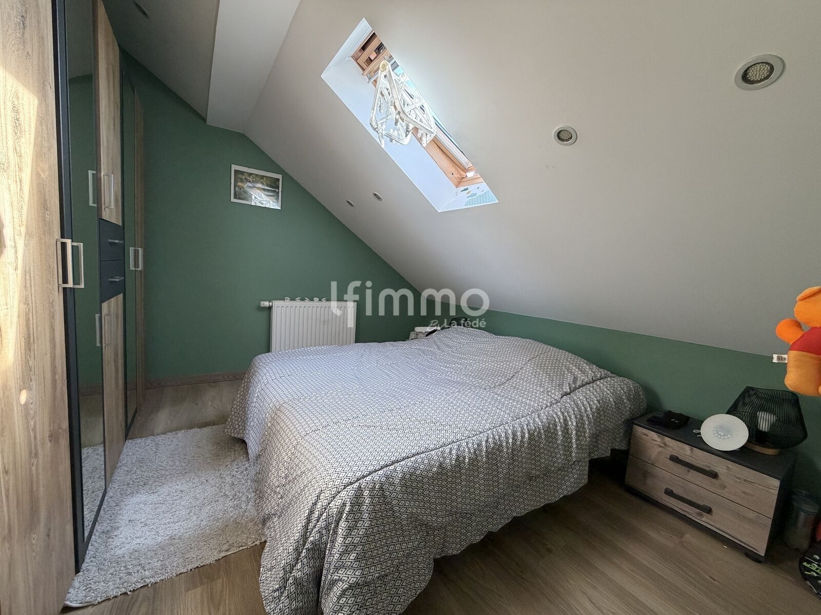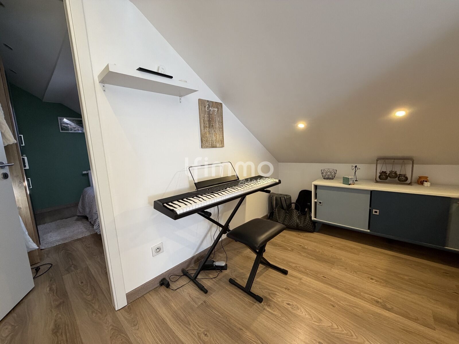 À l’étage, deux chambres confortables vous attendent, accompagnées d’un dégagement qui dessert une salle de bain. Ces espaces intimes sont parfaits pour accueillir votre famille ou aménager un bureau selon vos besoins.