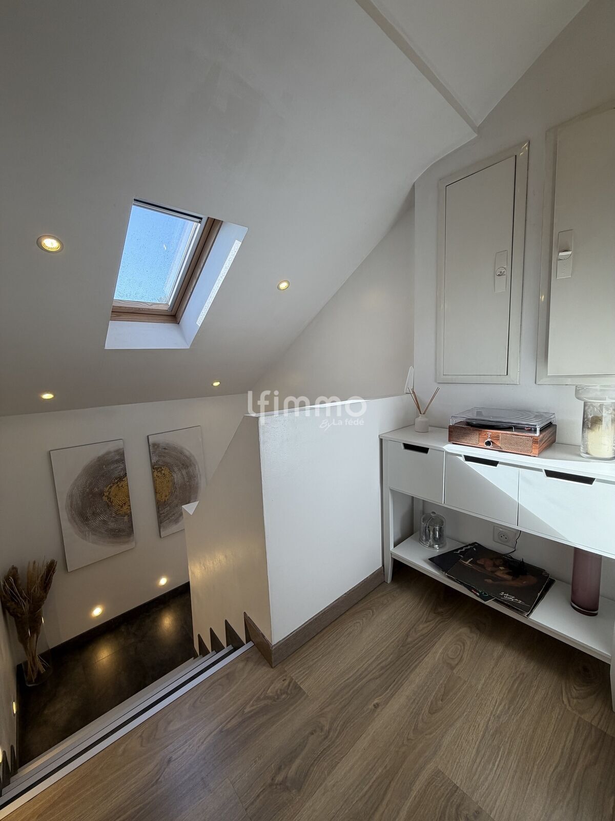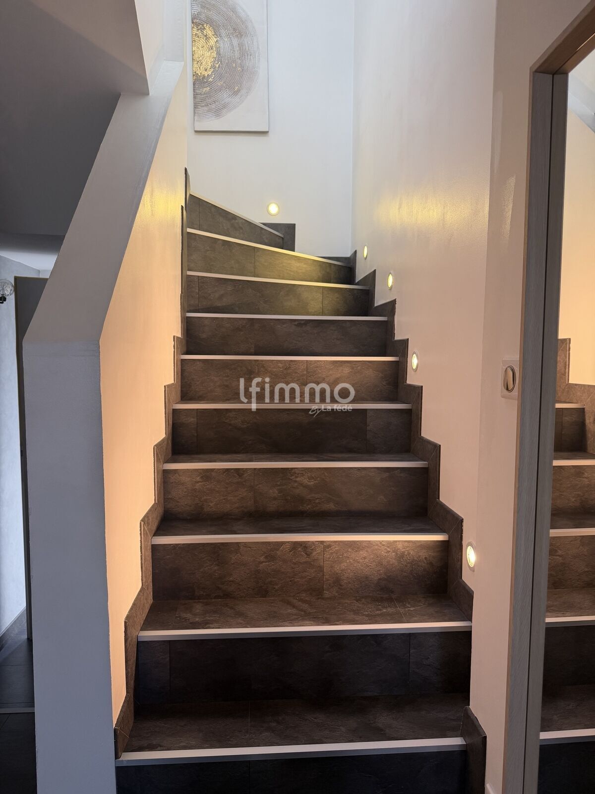 Un accès à un sous-sol aménagé pour un espace buanderie, bureau, chambre d'amis ou pour le plus grand bonheur des ados.