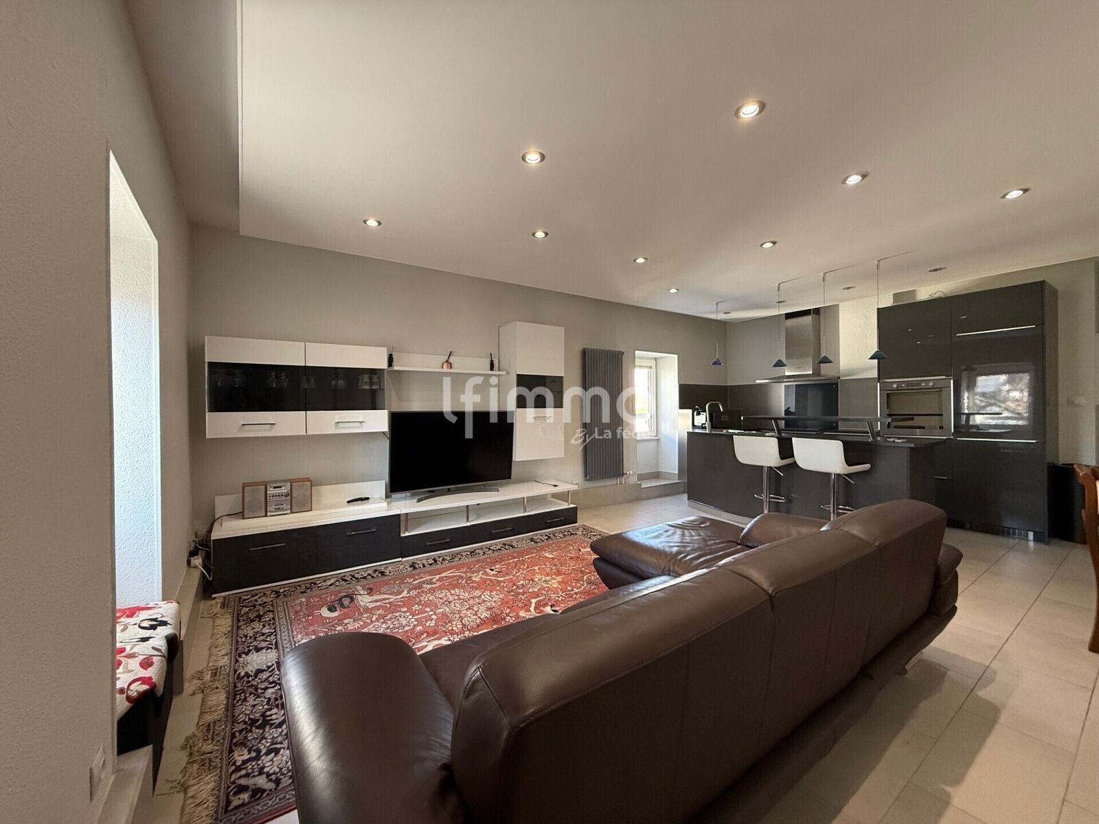 La pièce de vie lumineuse accueille une cuisine équipée, donnant sur un salon-séjour convivial, idéal pour partager des moments en famille ou entres amis.